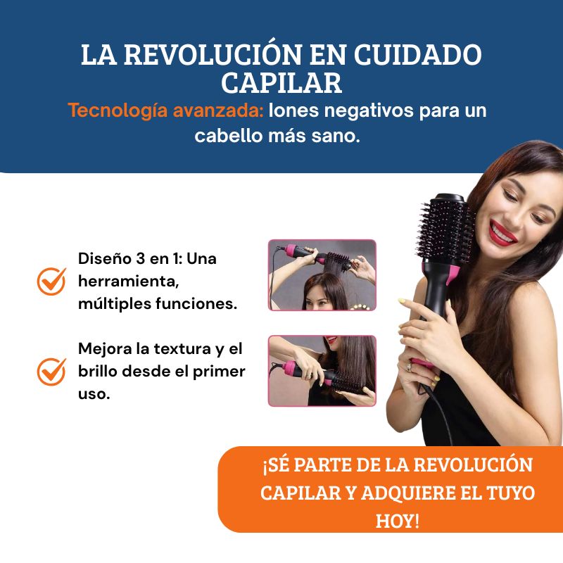 ¿Cansada de perder horas frente al espejo? 😩 El Cepillo 3 en 1 con Iones Negativos alisa, seca y ondula en minutos mientras cuida tu cabello.