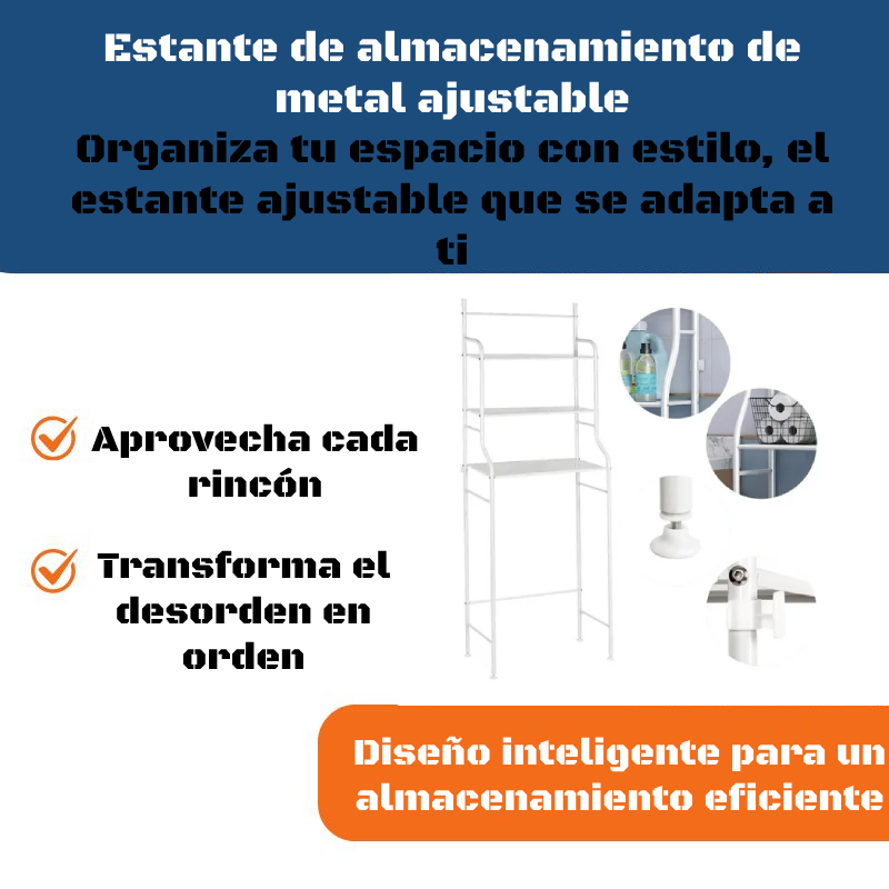 ¿Buscas una solución para el desorden en tu baño? Con nuestro Estante de Almacenamiento de Metal Ajustable, transforma cualquier área desorganizada en un espacio eficiente y ordenado. Diseñado para adaptarse a tus necesidades, te ayudará a aprovechar cada rincón. ¡Redescubre tu espacio y mantén todo al alcance de tu mano!