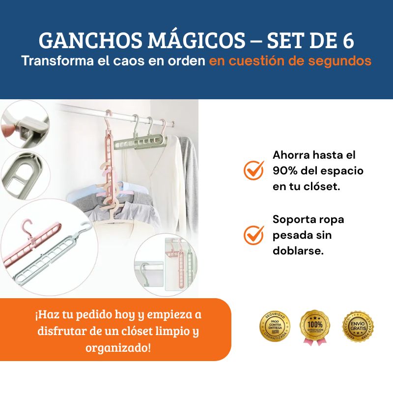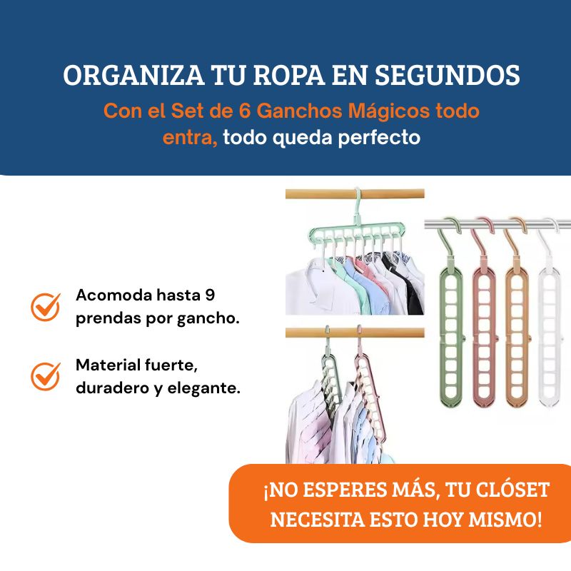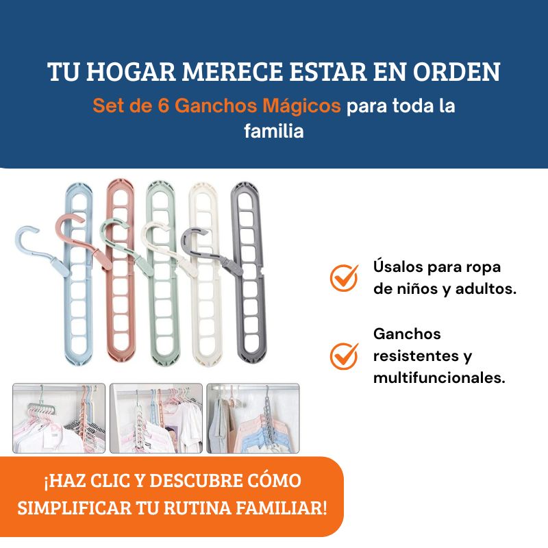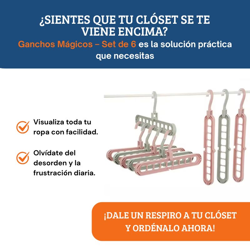 💡 Con los Ganchos Mágicos puedes transformar tu clóset en segundos y ganar hasta el doble de espacio.