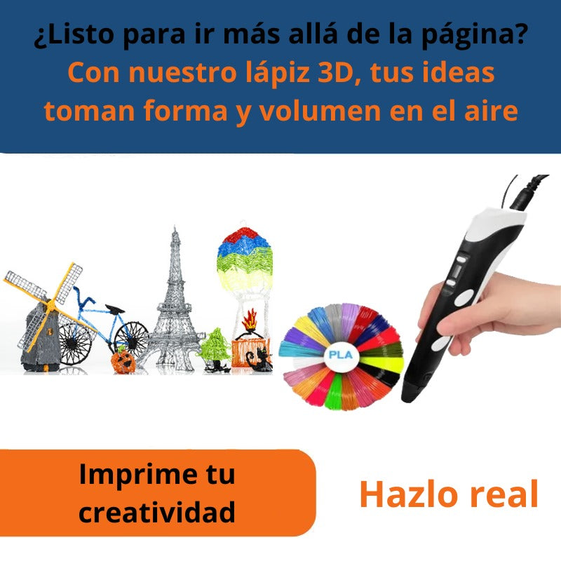 - 💡 ¿Buscas una nueva forma de expresarte? Si el papel te queda pequeño, este lápiz es tu boleto a un mundo sin límites. Te permite materializar conceptos, dando volumen y forma a lo que antes solo existía en tu mente. Es una experiencia fresca y dinámica para darle vida a tus proyectos.