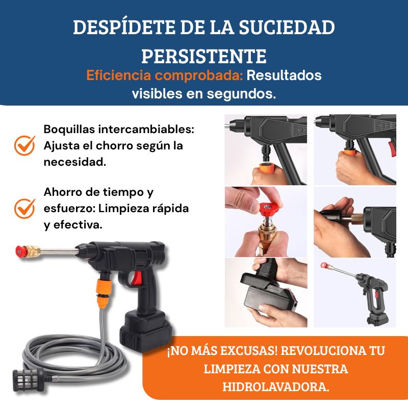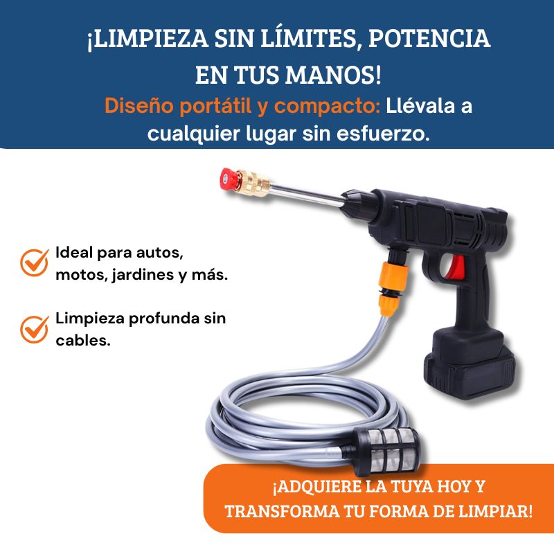 La hidrolavadora que transforma la limpieza del hogar, tu auto y más… sin mangueras, sin enredos.